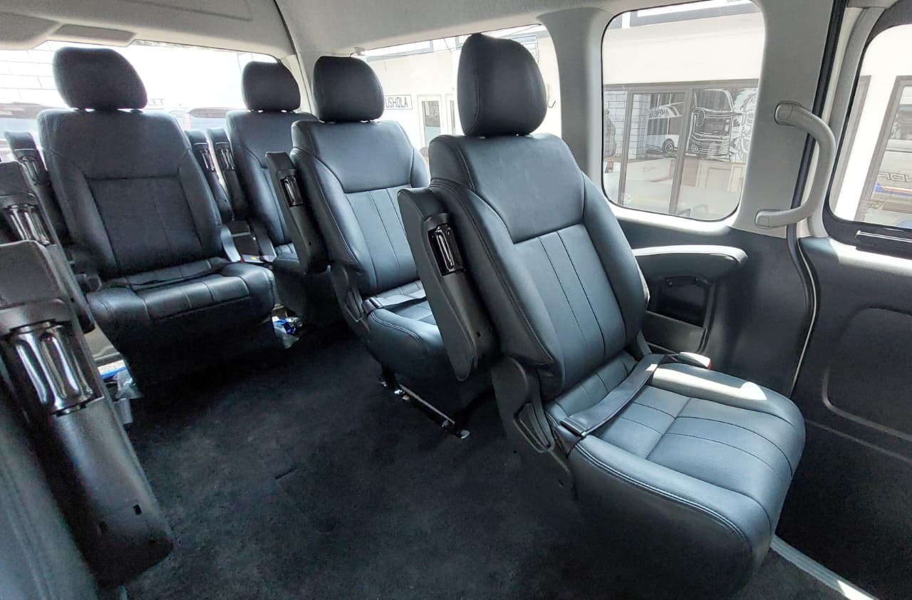 Perpaduan interior dan karpet warna krem serta fasilitas yang tersedia membuat armada kami menjadi berkelas dan elegan.